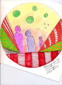 This colored pencil drawing is called “Opening The World”. It is a mandala which I did a few years ago. This is before I stopped doing the mandalas to start my day. I guess when I moved out of my studio and into my home, I didn’t realize after having an outside studio for 5 years that I would get caught up into home stuff and computer AND the “business of art”. As I get older, focusing is hard because I have to let the painting or paintings dry so I start doing other things. This has got to stop because I’m not into my “Zen Zone” as much.